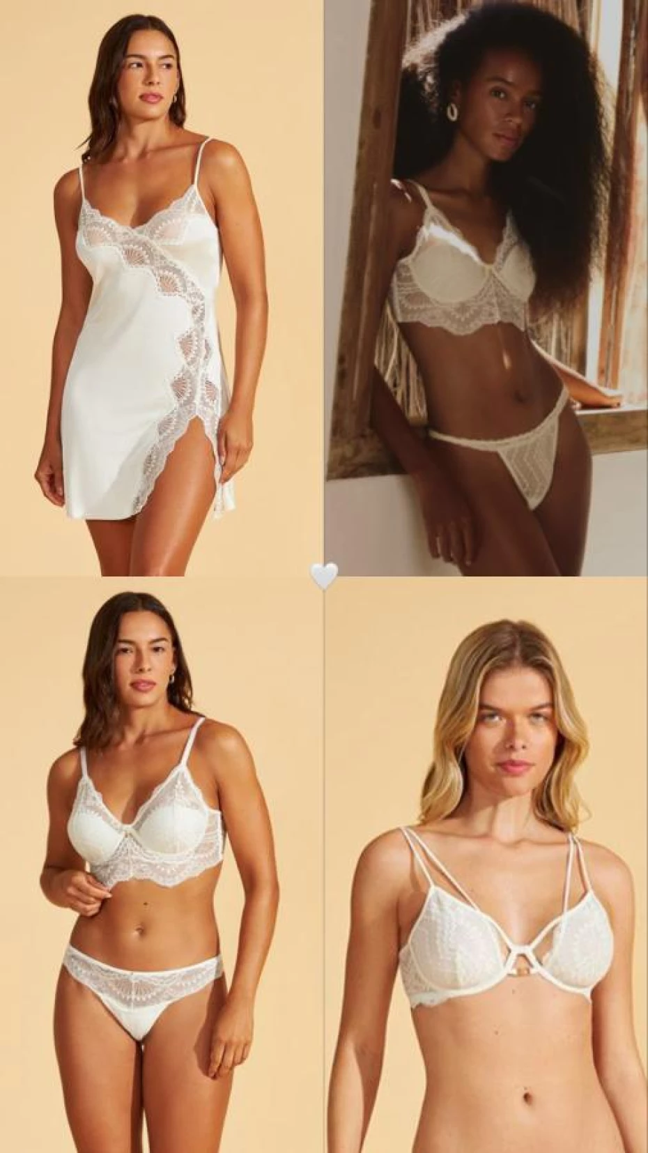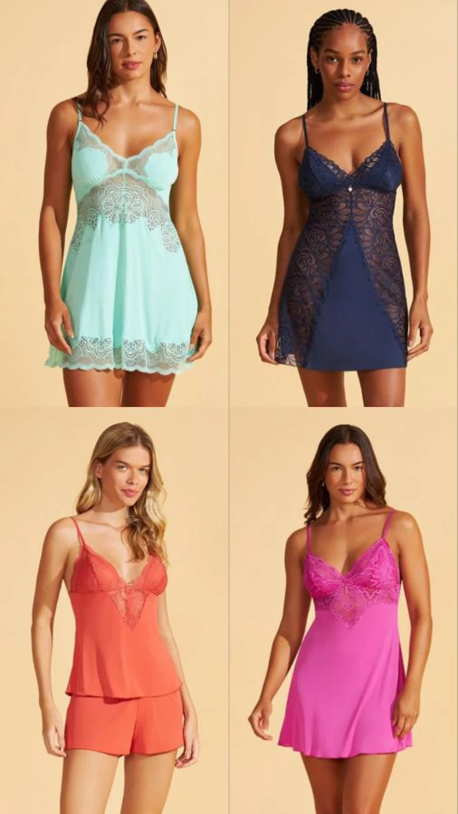 Encante-se com nossa seleção de sutiãs, calcinhas, pijamas femininos e masculinos, camisolas, robes, bodies, modeladores, meias-calças, linha noiva, maternidade e produtos sensuais.
